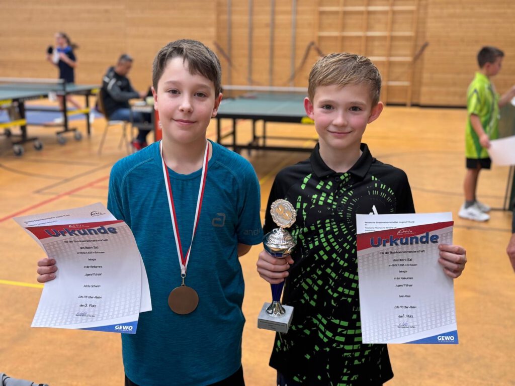 Erfolgreichster Teilnehmer war Adrian Klees bei der Jugend 15 mit dem Titel im Einzel und der Vizemeisterschaft im Doppel. Aber auch sein Bruder Leon überzeugte mit dem Titel bei der Jugend 11 und den dritten Platz im Doppel zusammen mit seinem Vereinskollegen Florian Meißner. Micha Schwinn wurde nach einer starken Leistung überraschend Dritter bei den Jugend 11. Bei der Jugend 13 wurde nach harten Kampf Jonas Schwinn und Nico Meißner Bezirksmeister im Doppel. Nico Meißner wurde zudem Dritter im Einzel nachdem er im Halbfinale erst im Entscheidungssatz denkbar knapp 10:12 seinem Gegner unterlag. Bei den Mädchen überzeugte Xenia Kutepovs bei den Mädchen 15 mit der Vizemeisterschaft im Doppel, sowie den dritten Platz im Einzel und Doppel bei den Mädchen 13.
